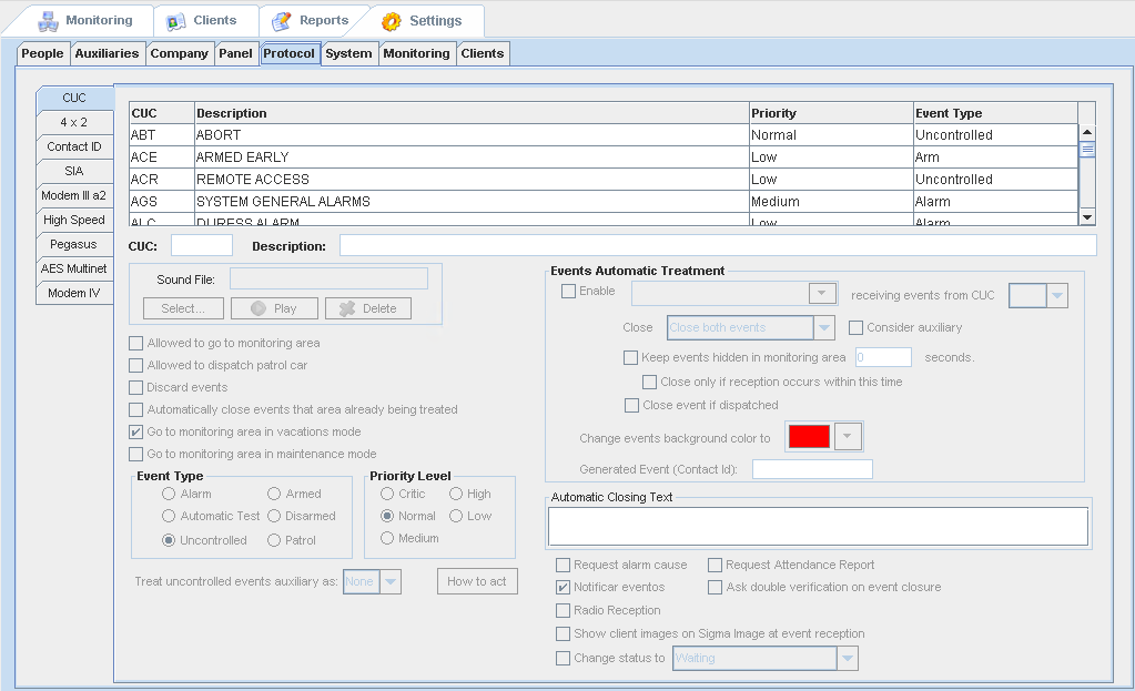 | IGP8000(modo Surgard) | ContactID, 4x2, SIAe SIALevel One |