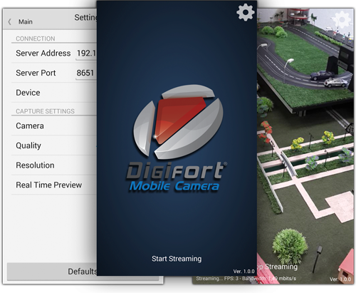 Com o aplicativo Digifort Mobile Camera, será possível transformar seu smartphone ou tablet Android ou iOS em uma câmera, transmitindo vídeo ao vivo para o seu servidor Digifort, permitindo a visualização no cliente de monitoramento ou por outros Mobile Clients, essa função consome apenas uma licença de câmera, como se fosse um dispositivo IP, permitindo total mobilidade, facilitando a verificação de canteiros de obras, containers, entre outras diversas oportunidades de uso, de grande utilidade para o sistema de monitoramento pois permite registro de imagens onde não são possíveis instalações de câmeras.